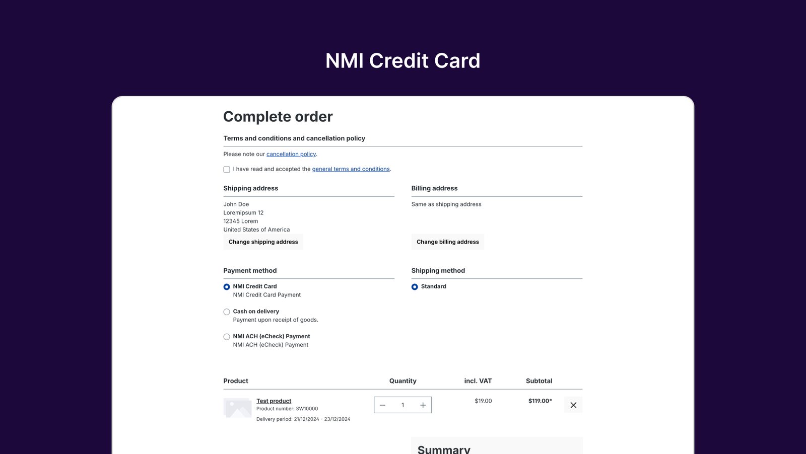Mit NMI erhält Ihr Shopware-Shop eine robuste Zahlungslösung, die Sicherheit, Flexibilität und nahtlose wiederkehrende Zahlungen gewährleistet. Schützen Sie Ihr Geschäft und Ihre Kunden vor Betrug und bieten Sie gleichzeitig eine reibungslose und vertrauenswürdige Checkout-Erfahrung.
